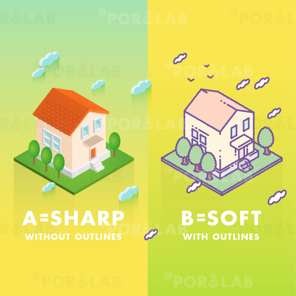 アウトライン(枠線)のないアイソメ 建物のタッチ。少しシャープでかっこいい印象になります。(角度はアイソメトリックのみ。)