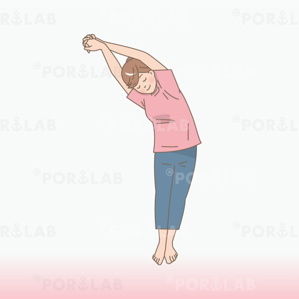 美容によい食事やストレッチを紹介する健康指導用シート「一週間プログラム」の挿絵として、ストレッチをする女性イラストを制作しました。