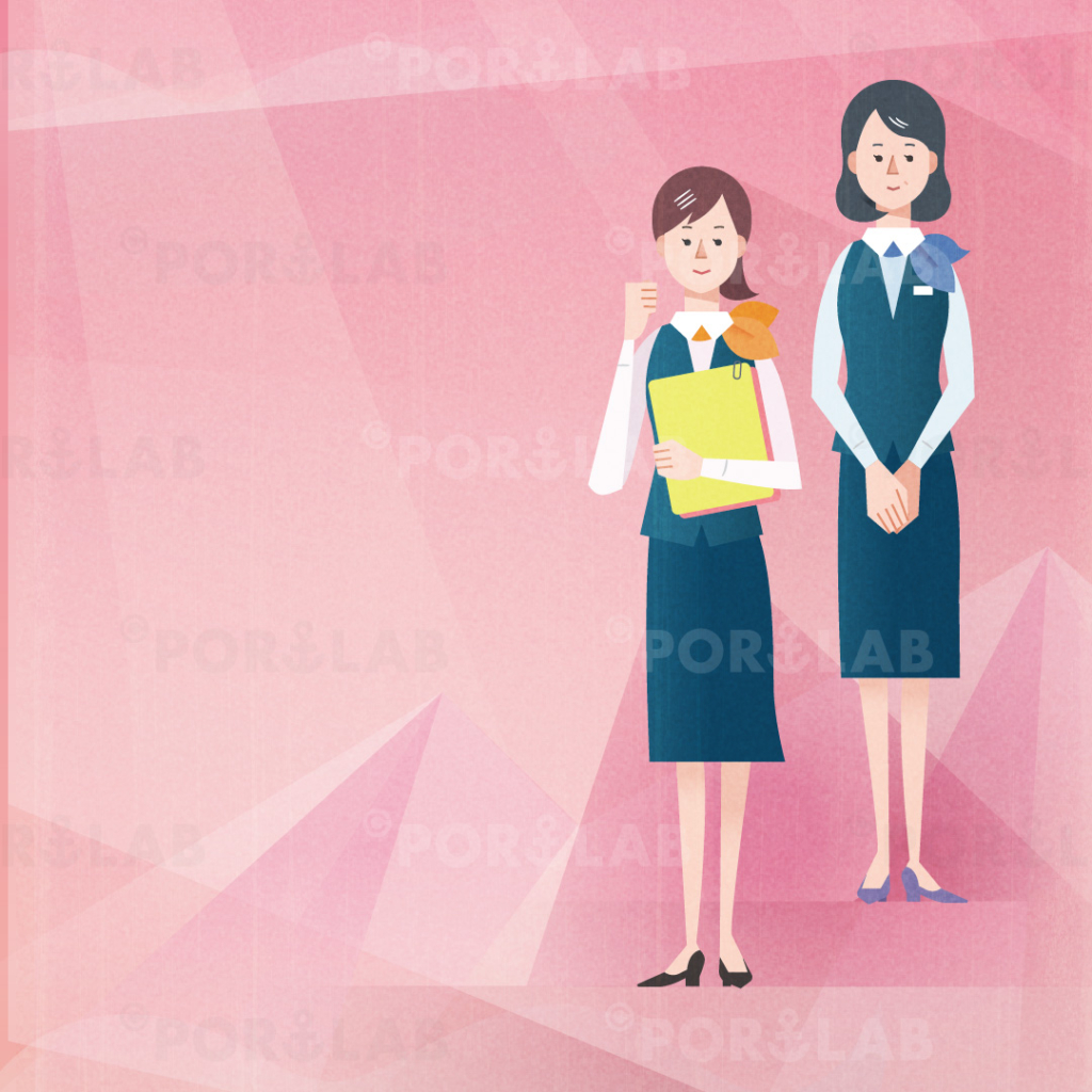 銀行業務の専門誌「バンクビジネス」2019年9月の増刊号の表紙用に、若い女性銀行員と先輩社員のイラストを制作しました。