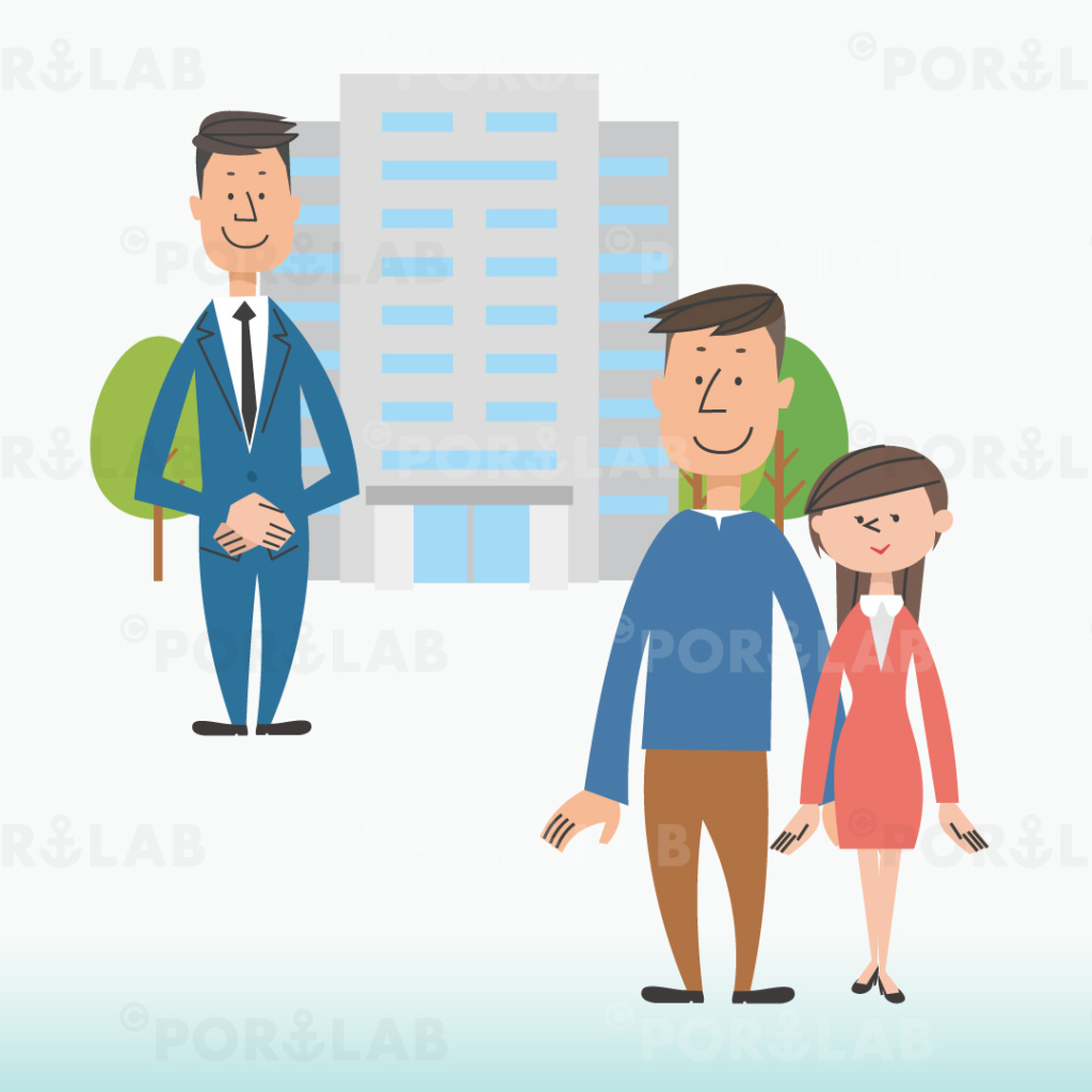 「治験ツール:偏頭痛」冊子のビジネスマン、夫婦、ビルのイラストを制作しました。