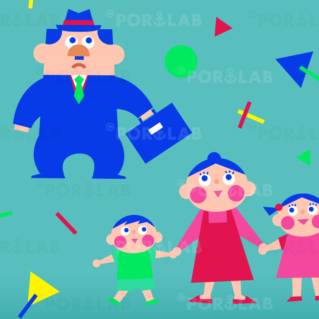 企業パンフレット用の挿絵としてサラリーマンや親子など様々な人物キャラクターを制作しました。