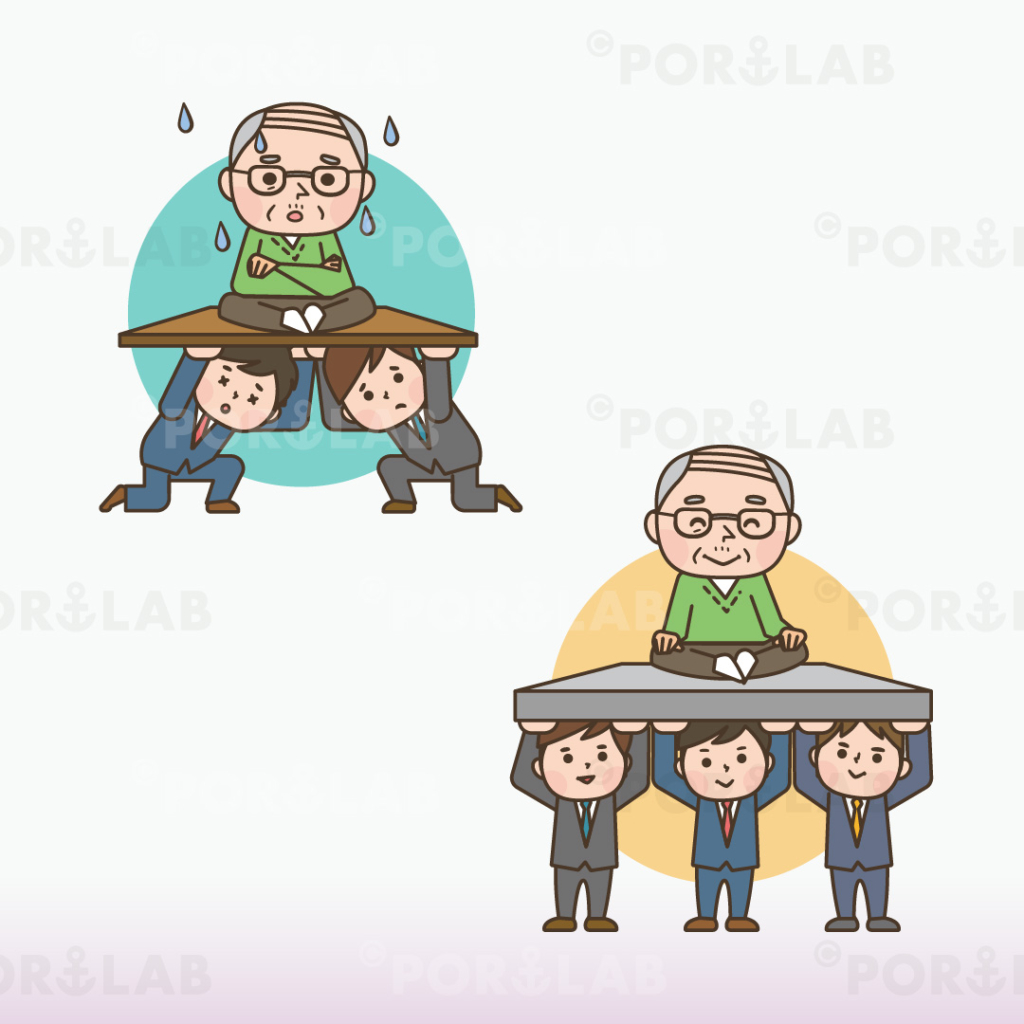 ライフプランなどに関する広報ツールの挿絵として、高齢者を支える現役層を表現するイラストを制作しました。
