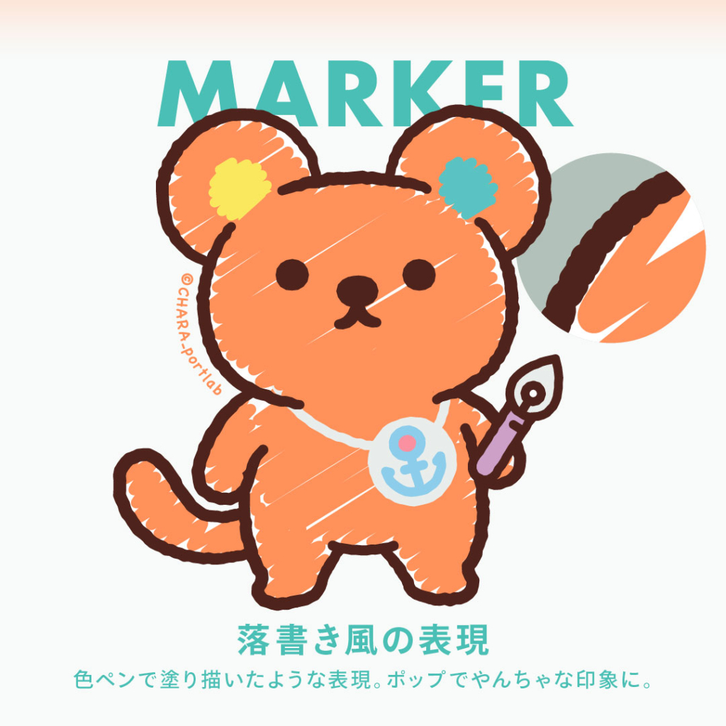 キャラクターのタッチ(=塗りや線の表現)をPORTLABオリジナルキャラクター、ミナトクマウスでご紹介!キャラクタータッチLevel.2【応用編】では、落書き風やファンシーな「ゆめかわ」風など、人気のタッチを紹介します。